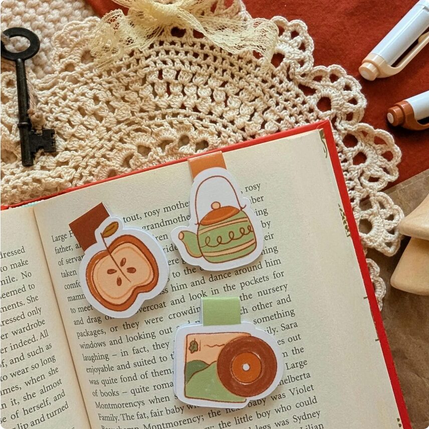 These cute magnetic bookmarks are perfect for any book lover! It includes three bookmark designs – apple, teapot, and vinyl record.